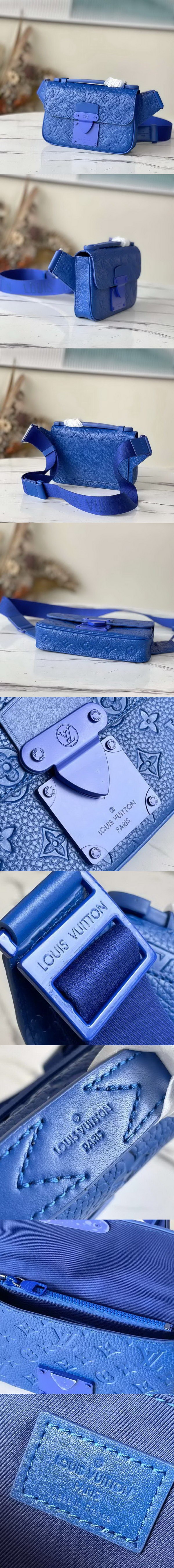 高仿路易威登/LV S Lock Sling 手袋,由Monogram壓紋皮革制成,點綴亮眼藍色色調。創意磁吸鎖扣以傳統硬箱鎖扣為靈感打造,配有標識肩帶與壓紋手柄,時尚實用,款號:M58486