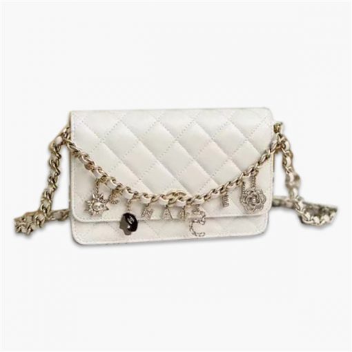 香奈兒/Chanel Woc 吊墜徽章包,小羊皮經典菱格紋飾以粗獷鏈子與精美墜飾,裝飾手袋,高級溫雅,美呆瞭,款號:AS81051【編號】AS81051#H028【顏色】如圖所示【尺寸】19cm【規格】鏈條提手翻蓋開合織物襯裡內拉鏈袋6個卡槽鏈條肩帶背面貼袋【附屬品】防塵袋