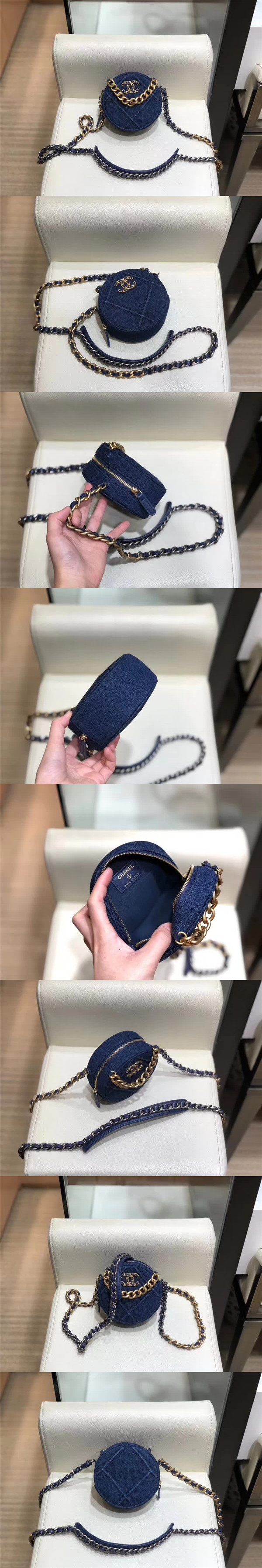 香奈兒/Chanel 19 Bag,選用丹寧牛仔面料 水洗復古工藝,近年超流行的小圓餅,彰顯非一般的時尚風潮,成為當季最經典的潮范兒,人手必備的大爆款【編號】A125【顏色】藍色【尺寸】12.5 cm【規格】鏈條提手拉鏈開合帆佈襯裡鏈條肩帶【附屬品】防塵袋