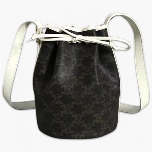 賽琳/Celine CELINE TRIOMPHE 水桶包,顏值爆表,縮袋口設計,主打休閑風,版型符合現代時尚潮元素,簡約大方簡直不能太好看,側邊肩帶長短調節,兼具實用性,小心機的側面燙金 logo,款號:191142【編號】191142#A078【顏色】白色【尺寸】21.5 X 15 cm【規格】抽繩開合織物襯裡可調節肩帶【附屬品】防塵袋