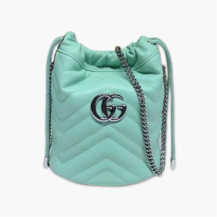 古馳/Gucci 馬卡龍系列,迷你水桶包,整體所呈現的淡雅色彩以柔和而充滿生氣的色調,質感超贊,款號:575163【編號】575163#G075【顏色】淺綠色【尺寸】19 X 17 cm【規格】抽繩開合超細纖維襯裡2個卡槽1個鏈條鑰匙扣鏈條肩帶【附屬品】防塵袋