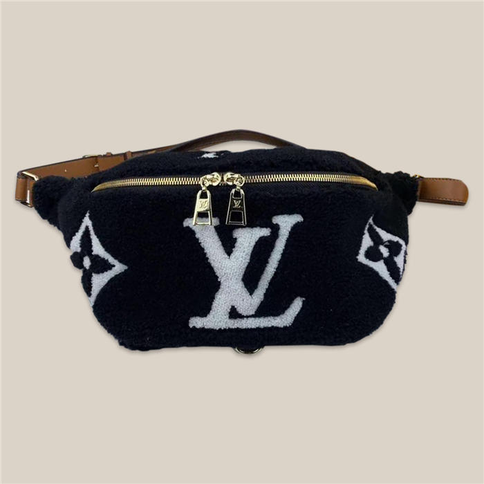 路易威登/LV BUMBAG 腰包,選用毛茸茸的植絨絨佈搭配小牛皮飾邊精心裁制而成,點綴品牌標識圖案,造型可愛,毛毛手感超級好,款號:M43644【編號】M43644#2799【顏色】黑色【尺寸】37 X 14 X 13 cm【規格】雙拉鏈開合織物襯裡背面拉鏈袋可調節腰帶【附屬品】防塵袋