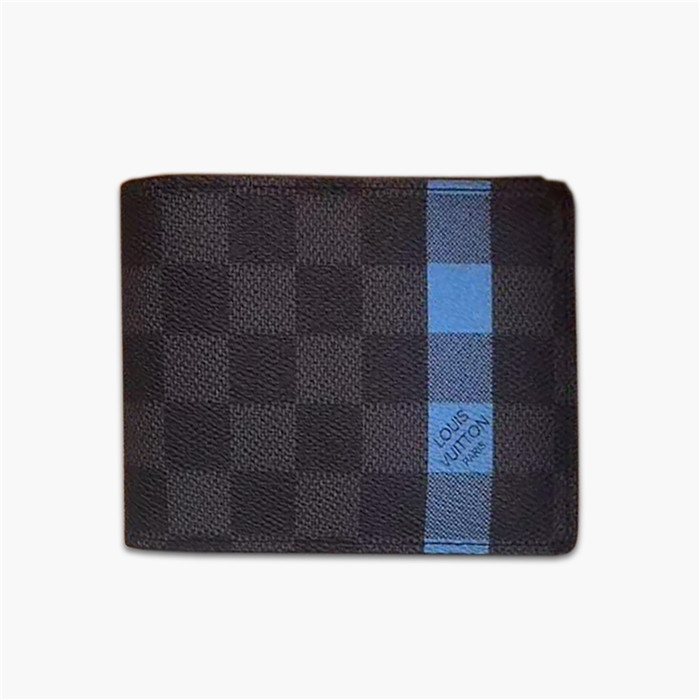 路易威登/LV 短款錢夾,新版Damier Graphite帆佈,呈現出明亮活潑的藍色,造型細長,不負Slender之名,款號:N60086【編號】N60086#L090【顏色】黑/藍色【尺寸】11 X 9 cm【規格】對折開合1個鈔票隔層2個夾層6個卡槽【附屬品】防塵袋