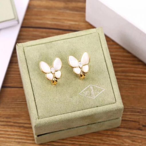 Van Cleef & Arpels??經典款白貝母?蝴蝶耳拍,電鍍厚金?超強保色!