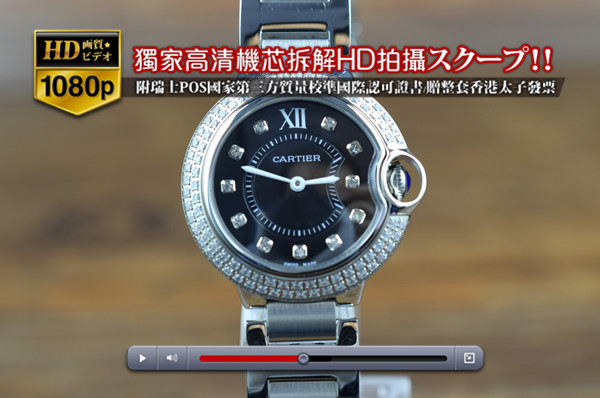 Cartier卡地亞(女表28mm)Ballon blue藍氣球系列腕表 不銹鋼表殼-鑲嵌水鉆表圈 裝載瑞士石英機芯 系列 Ballon blue尺寸 表殼直徑28mm x厚度10mm機芯 瑞士石英機芯功能 時針、分針表殼 316L不銹鋼拋光表殼、整個表殼由外表殼、內表殼、背蓋組成表圈 316L不銹鋼-CNC鑲嵌工藝鑲嵌水鉆玻璃材質 弧形透明抗磨損藍寶石玻璃面盤 黑色面盤、鉆石時標表帶 不銹鋼鏈節表帶、搭配按壓折迭扣後蓋 不銹鋼磨砂後蓋、LOGO信息雕刻、以8顆螺絲固定表冠 推拉式表冠是否防水 生活防水