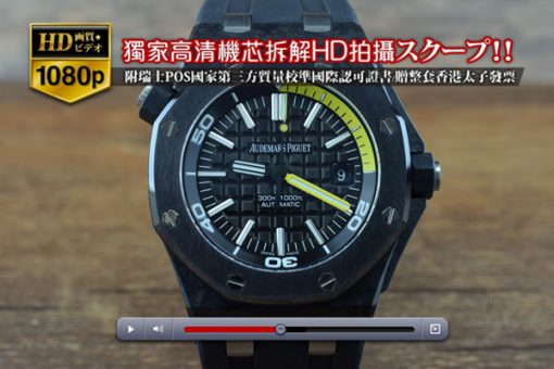 Audemars Piguet愛彼(Noob工廠)皇傢橡樹離岸型系列-碳纖維材質表殼-陶瓷表圈 A-3120自動機芯 系列 Royal Oay Offshore Diver尺寸 表殼直徑42mm x厚度14mm機芯 Cal.3120自動計時碼表機芯功能 時針、分針、中心大秒針、日期(3點位窗式帶放大鏡顯示)表殼 碳纖維表殼,整個表殼分為中框、表圈、背蓋組成表圈 高溫鍛造黑色陶瓷材質-磨砂工藝處理玻璃材質 透明抗磨損藍寶石玻璃面盤 黑色表盤鐫刻“Méga Tapisserie”超大型格紋裝飾表帶 黑色橡膠表帶、AP精鋼折迭扣後蓋 不銹鋼後蓋、以8顆螺絲固定表冠 鎖入式龍頭是否防水 生活防水