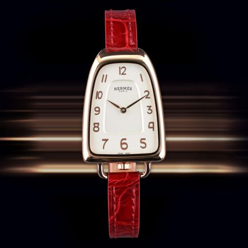 系列:Galop d Hermes尺寸:表殼直徑26mm x 厚度8mm機芯:瑞士RONDA石英機芯功能:時針、分針表殼:316L型材不銹鋼表殼-電鍍18k玫瑰金、表殼一體成型與後蓋組成表圈:316L型材不銹鋼-電鍍18k玫瑰金面盤:銀色面盤、玫瑰金色阿拉伯數字時標表帶:紅色鱷魚皮表帶、玫瑰金針式扣後蓋:316L不銹鋼材質-電鍍18k玫瑰金、以4顆螺絲鎖入固定表冠:推拉式玻璃材質:透明抗磨損藍寶石玻璃是否防水:生活防水
